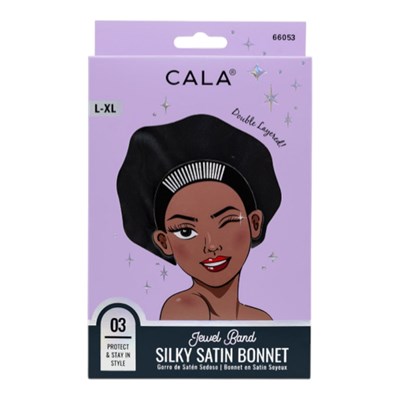 Cala Products Jewel Band Silky Satin Bonnet is designed for ultimate comfort and hair protection. This double-layered satin bonnet helps retain moisture, reduce frizz, and minimize breakage while you sleep.