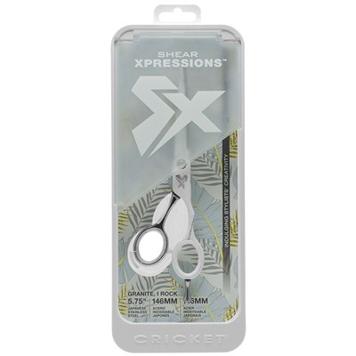 Cricket Shear Xpressions Granite I Rock Shears. Rich marble pattern prominently featured on the front of the shear, with a highly polished, coordinating chrome finish on the back. These Japanese Stainless Steel 5.75 inch shears make the ultimate stylist accessory while supporting the creating/cutting/styling hair process.