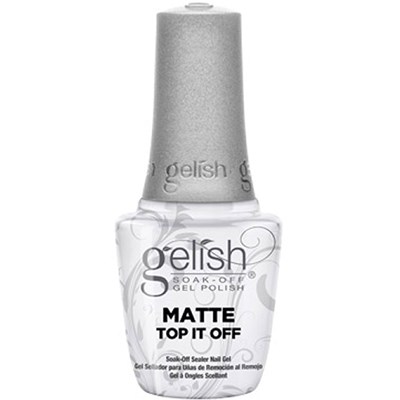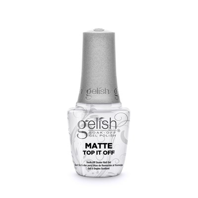 Gelish Matte Top It Off seals your Gelish® Soak-Off Gel Polish to a plush, matte-satin finish that will not chip or peel. Removes with Soak-Off Gel Remover. Cures: 30 seconds in LED Light; 2 minutes in UV Light.